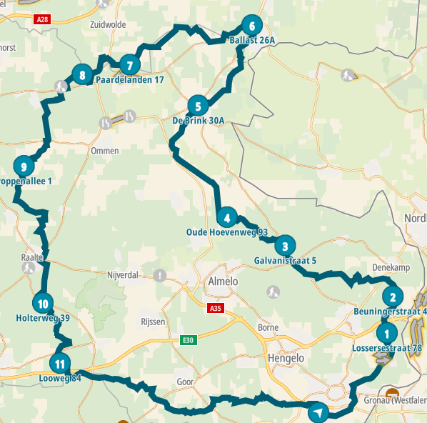 Route Enschede-Hardenberg-Dalfsen-Markelo